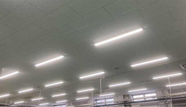 省エネルギーの取り組みの一環として、照明器具をLED照明への置き換えを進めています。五條工場は全灯の置き換えを完了、本社工場は8割以上の置き換えを完了しました。