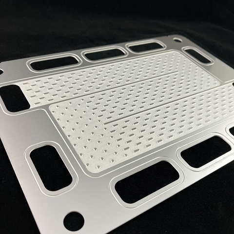 接合面の平坦性を維持したまま、面内に自由なレイアウトの掘り込みを形成できるエッチング加工とはとても相性の良い部品で、特に厚物のエッチングに多く実績を持つ当社の得意分野でもあります。